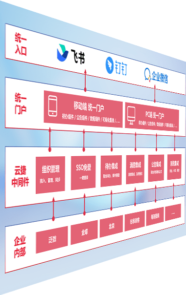 对协作平台提供支持服务,,支持企业应用与协作平台对接,,,包含组织同步、、、、消息集成、、、待办集成等。。。支持目前主流的协作平台:钉钉、、、企微和飞书。。。